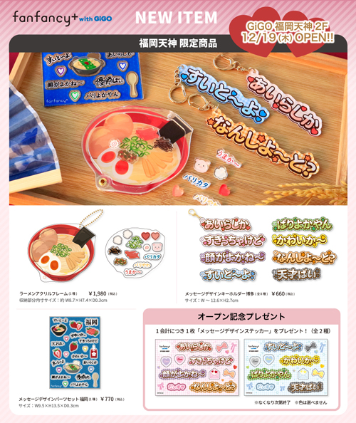 推し活のためのかわいいアイテムの販売だけでなく、福岡天神限定のアイテムも販売を予定しております。